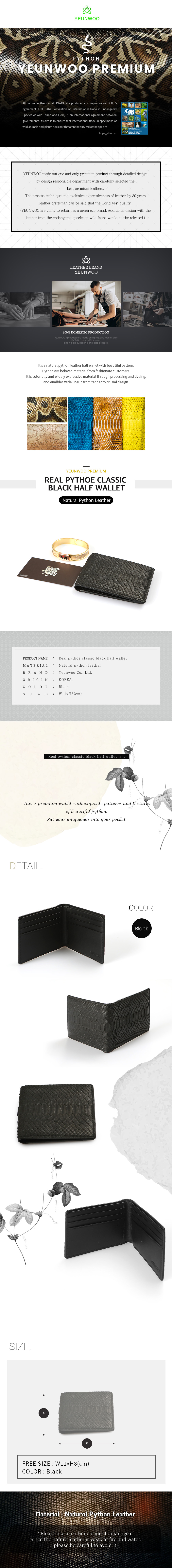 Real Pythoe Classic Black Half Wallet